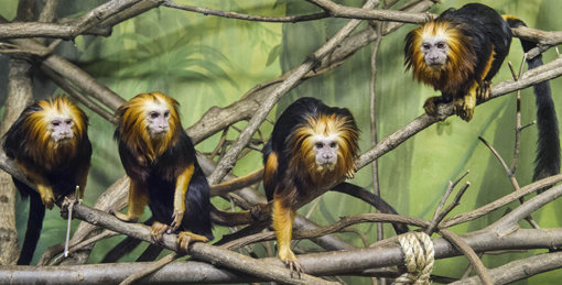 비단원숭이과로 체중 500¤700g, 몸길이 20¤34cm의 작은 체구지만 자기 몸보다 훨씬 더 긴 꼬리(32¤40cm)를 가졌다. 얼굴 주변에 난 사자 갈기 모양의 황금빛 털에서 유래돼 황금머리사자 타마린으로 불린다.