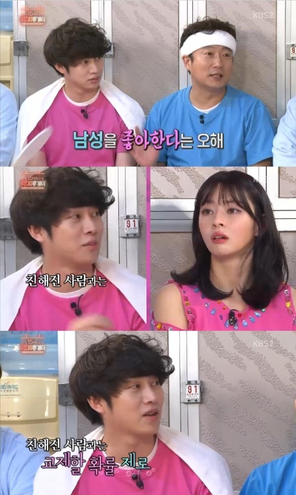 이날 김희철은 MC들로부터 그가 동성애자라는 소문에 대한 질문을 받았다. 이에 이수근은 “그렇게 오해 받을 만 하다. 정말 걸그룹들과 친하게 지낸다”고 말을 보탰다.