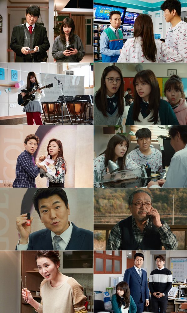 여기에 더해 긴박한 상황 속에 놓인 듯한 극 중 재고처리반 동료 이미도&강기영, 그리고 정자에 앉아 심각한 분위기를 조성하며 전화를 받고 있는 신구의 모습은 긴장감을 배가시킨다. 또한, 환자복을 입고 있는 윤제문&정소민 부녀를 향해 인상을 찌푸리고 있는 편의점 직원 박명수의 모습은 MBC [무한도전]의 ‘무도 드림’ 특집을 떠올리게 하며 시선을 사로잡는다.