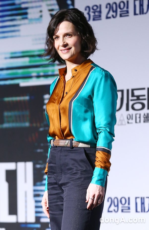 배우 줄리엣 비노쉬가 17일 오후 서울 강남구 그랜드인터컨티넨탈호텔에서 열린 영화 \'공각기동대: 고스트 인 더 쉘\' 내한 기자회견에 참석해 포토타임을 하고 있다.
