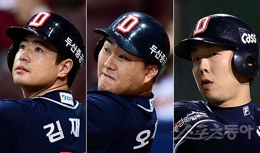 두산 김재환-오재일-박건우(왼쪽부터). 스포츠동아DB