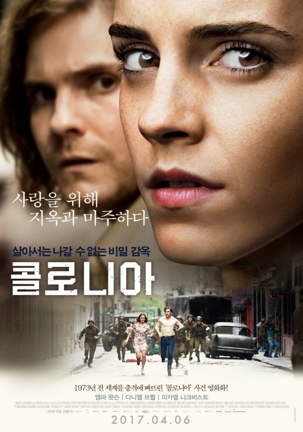 ‘콜로니아’는 1973년 칠레 군부 쿠데타를 배경으로 비밀 경찰에 붙잡혀간 연인 ‘다니엘(다니엘 브륄)’을 구하기 위해 ‘레나(엠마 왓슨)’가 살아서는 돌아올 수 없다는 ‘콜로니아’에 찾아가서 벌이는 사투를 그린 스릴러.