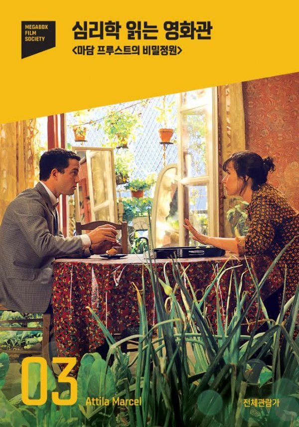 이기란 메가박스 편성전략팀장은 “2013년 토론토 국제 영화제 특별 부문에 상영되기도 한 영화 ‘마담 프루스트의 비밀정원’은 기억을 찾아가면서 조금씩 변화되는 주인공 폴의 심경 변화가 눈길을 끄는 작품”이라며, “심리학 박사의 해석을 통해 영화의 감동을 더욱 더 배가시키길 바란다”라고 전했다.