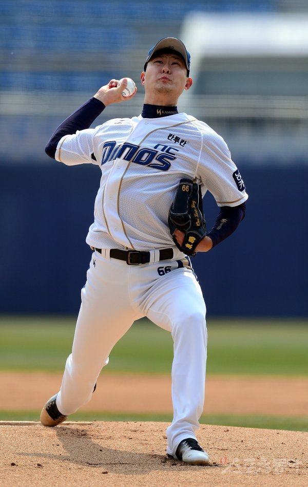 21일 창원 마산야구장에서 ‘2017 타이어뱅크 KBO 리그’ 한화이글스와 NC다이노스 시범경기가 열렸다. 선발 투수로 등판한 NC 최금강이 역투하고 있다.