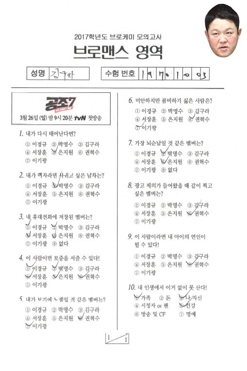 tvN 강제 브로맨스 배틀 ‘공조7’ (연출:전성호) 출연진의 브로맨스 모의고사 시험지가 공개됐다.