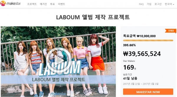 글로벌 크라우드펀딩 플랫폼 메이크스타에서 진행하고 있는 라붐의 앨범 제작 프로젝트가 시작한지 5분만에 100%를 달성하고, 20분이 채 되기도 전에 200%와 4시간 300%를 달성했다.