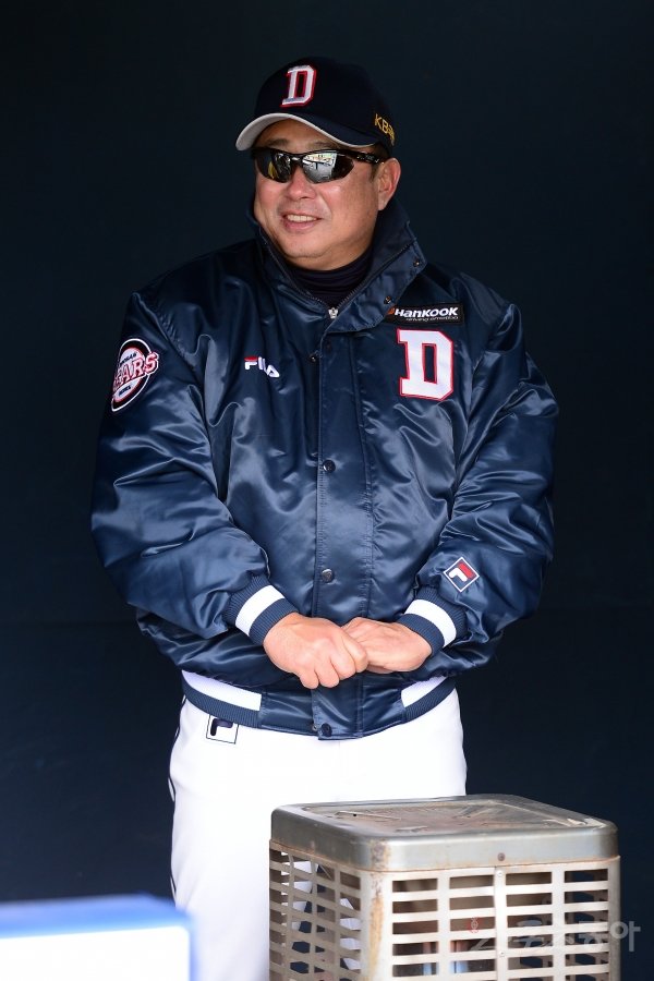 25일 잠실야구장에서 ‘2017 타이어뱅크 KBO리그’ 시범경기 두산베어스와 LG트윈스의 경기가 열린다. 경기를 앞두고 두산 김태형 감독이 난로를 쬐며 취재진과 인터뷰를 하고 있다.