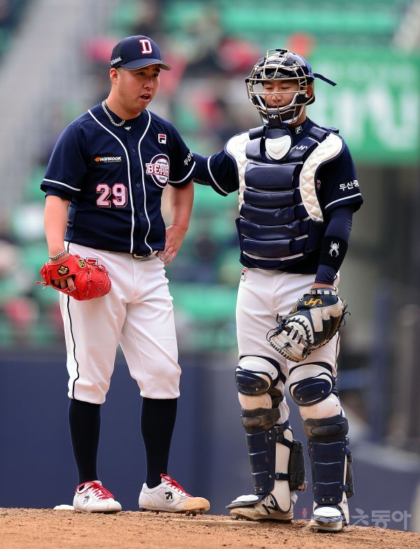 26일 서울 잠실야구장에서 ‘2017 타이어뱅크 KBO 리그’ 두산베어스와 LG트윈스 시범경기가 열렸다. 선발 투수로 등판한 두산 유희관이 5회말 1사 상황에서 교체되고 있다. 잠실 | 김종원기자 won@donga.com