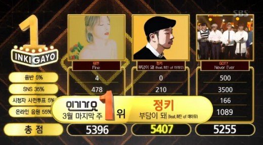 앞서 정키는 이날 방송된 SBS TV 가요 프로그램 '인기가요'에서 1위에 올랐다. 정키는 태연, 갓세븐과 함께 경쟁을 펼친 뒤 1위에 올랐다.