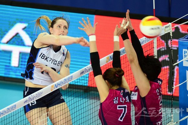 26일 인천 계양체육관에서 ‘2016-2017 NH농협 V리그’ 인천 흥국생명과 화성 IBK기업은행의 챔피언결정전 2차전 경기가 열렸다. IBK기업은행 리쉘이 흥국생명 블로커를 피해 스파이크를 날리고 있다.
