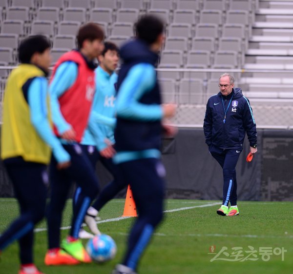 28일 시리아와 2018 러시아 월드컵 아시아지역 최종예선 7차전을 갖는 한국 축구대표팀이 26일 서울월드컵경기장에서 훈련을 가졌다. 슈틸리케 감독이 생각에 잠겨있다.