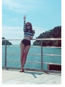 이해리는 최근 자신의 SNS를 통해 "날씨 너무 좋다.다리만 탔다. 어쩌죠?"라는 글와 함께 한장의 사진을 게재했다.