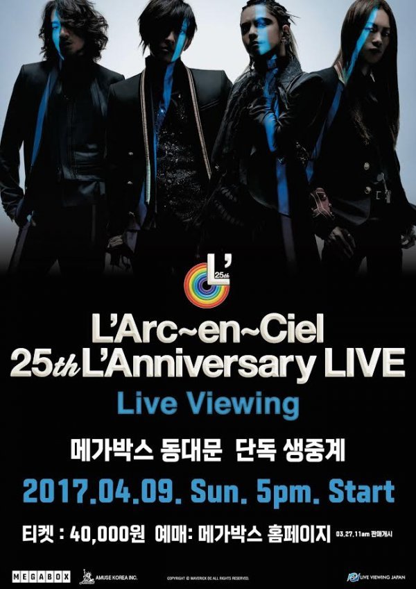 이번 ‘L\' Arc ~ en ~ Ciel(라르크 앙 시엘) 25th L\' Anniversary LIVE’ 공연은 국내 외에도 홍콩, 대만 등에도 생중계되며 전세계 팬들의 이목을 집중시킬 예정이다.