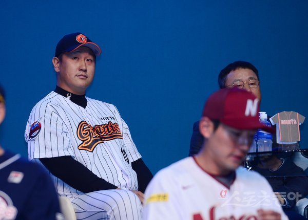27일 서울 용산구 블루스퀘어 삼성카드홀에서 ‘2017 타이어뱅크 KBO 미디어데이 & 팬페스트’가 열렸다. 롯데 이대호가 객석을 바라보고 있다.