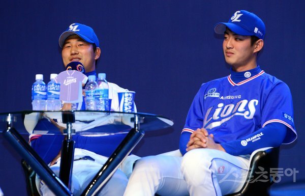 27일 서울 용산구 블루스퀘어 삼성카드홀에서 ‘2017 타이어뱅크 KBO 미디어데이 & 팬페스트’가 열렸다. 삼성 김상수(왼쪽)가 우승 공약을 밝히고 있다.