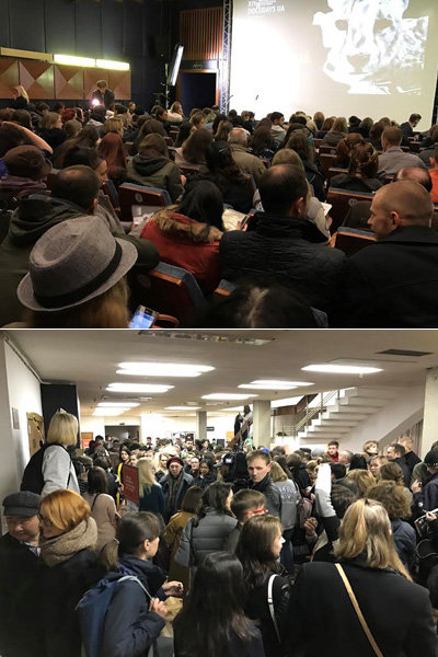 한국시간으로 27일 오전 2시30분 키예프 시네마하우스에서 진행된 ‘천국의 국경’ 공식 상영에는 한 시간 전부터 정원인 300명을 훌쩍 넘긴 관객이 몰려들었다. 관객들은 2층 상영관 앞에서부터 1층 출입문까지 줄을 서는 진풍경을 연출했다.