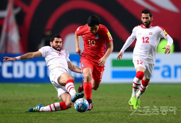 한국 축구대표팀이 28일 서울월드컵경기장에서 시리아와 2018 러시아 월드컵 아시아지역 최종예선 7차전을 가졌다. 한국 남태희가 시리아 수비수의 태클을 피해 공격하고 있다 있다.