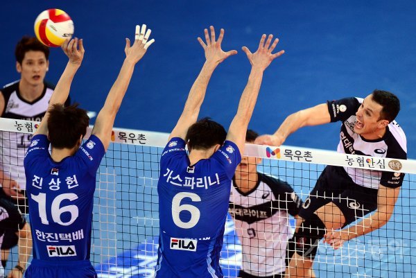 29일 천안 유관순체육관에서 ‘2016-2017 NH농협 V리그’ 천안 현대캐피탈과 인천 대한항공의 챔피언결정전 3차전 경기가 열렸다. 현대캐피탈 대니가 대한항공 블로커를 피해 스파이크를 날리고 있다.