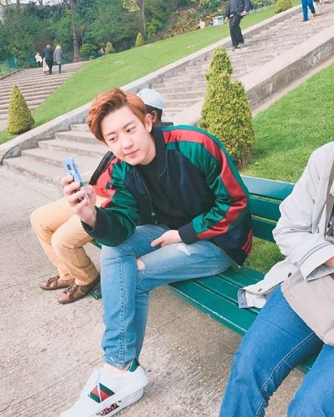 찬열은 29일 자신의 인스타그램에 사진을 게재했다. 게재된 사진 속 찬열은 벤치에 앉아 ‘셀카’를 찍고 있는 모습이다.