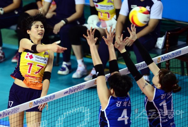 30일 경기도 화성실내체육관에서 ‘2016-2017 NH농협 V리그’ 화성 IBK기업은행과 인천 흥국생명의 챔피언결정전 4차전 경기가 열렸다. 흥국생명 이재영이 IBK기업은행 블로커를 피해 스파이크를 날리고 있다.