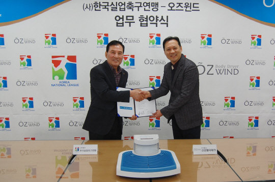 오즈윈드 바디드라이어는 음이온 발생을 통해 몸을 상쾌하게 건조시켜주는 생활가전용품이다. 신성델타테크는 4년 연속 연맹과 후원계약을 통해 오즈윈드를 후원하고 있으며, 구단 및 관중 경품지원 등을 협조키로 했다. 후원식에 참가한 신성델타테크 구광모 팀장은 "내셔널리그 후원을 통해 선수들과 축구팬들이 오즈윈드 바디드라이어에 많은 관심을 갖아주셔서 영광스럽게 생각하며, 앞으로도 꾸준히 상생하기를 기원한다"며 소감을 밝혔다.
