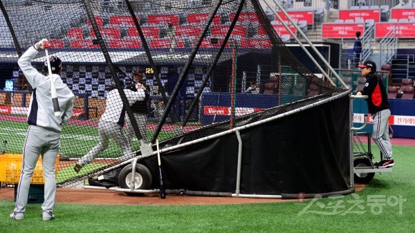 2일 서울 고척스카이돔에서 ‘2017 타이어뱅크 KBO리그’ 넥센 히어로즈와 LG 트윈스의 경기가 열린다. 경기전 LG 양상문 감독이 선수들의 타격을 바라보고 있다.