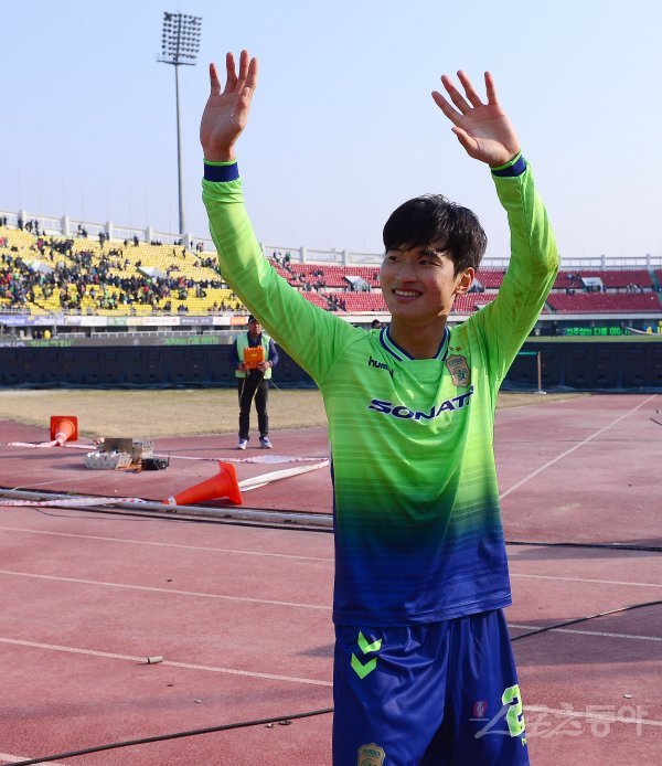 2일 전주종합경기장에서 열린 ‘KEB하나은행 2017 K리그 클래식’ 4라운드 전북현대와 FC서울의 경기에서 전북현대가 1-0으로 승리했다. 경기 후 결승골을 넣은 전북현대 김진수가 응원석 팬들을 향해 인사를 하고 있다.