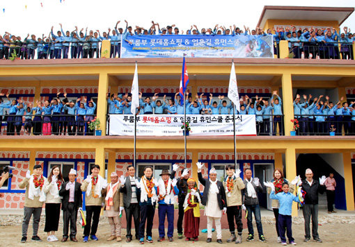 롯데홈쇼핑이 최근 네팔 푸룸부에서 ‘롯데홈쇼핑&엄홍길 푸룸부 휴먼스쿨’ 완공식을 열었다.