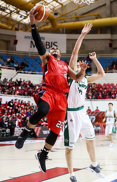 모비스가 네이트 밀러의 활약을 앞세워 동부에 2연승을 거두고 4강 PO에 바짝 다가섰다. 정규리그 내내 속을 썩였던 밀러는 PO 들어서는 해결사로 변신해 모비스의 희망으로 떠올랐다. 사진제공 | 모비스