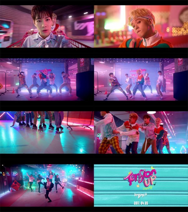 공개된 영상에서 임팩트 멤버들은 컬러풀하고 빈티지한 복고 스타일링을 완벽하게 소화하며 귀여운 꾸러기들의 매력을 뽐내고 있다. 화려한 네온사인이 가득한 롤러장을 배경으로 신곡 \'텐션업\'에 맞춰 신나는 파티를 펼치는 모습이 그려졌다.