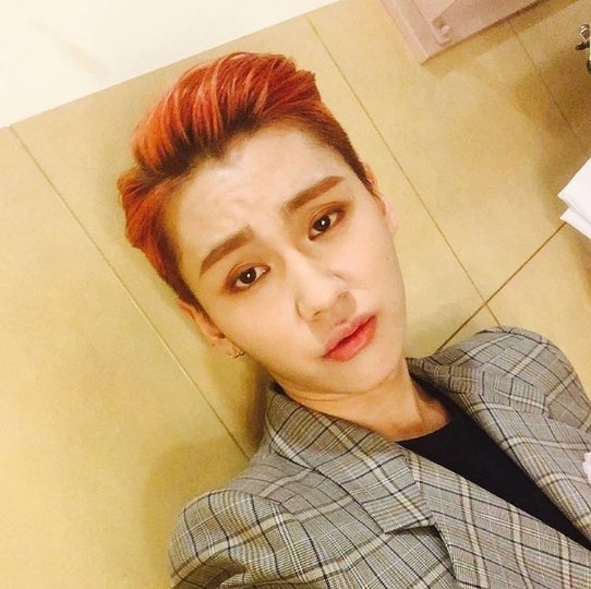 사진 속 일훈은 빨간 머리를 멋스럽게 올리고 카메라를 응시하고 있다.