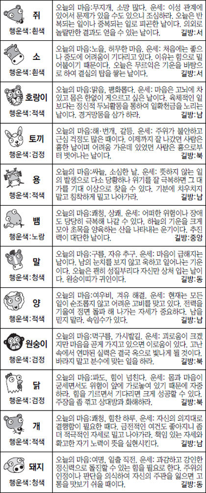■ 오늘의 운세|박경호의 운수 좋은 날