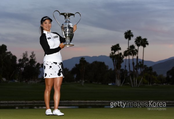 유소연이 3일(한국시간) 캘리포니아주 랜초미라지의 미션힐스컨트리클럽에서 끝난 LPGA 투어 ANA인스퍼레이션에서 우승한 뒤 트로피를 들고 환하게 웃고 있다. 사진=ⓒGettyimages이매진스