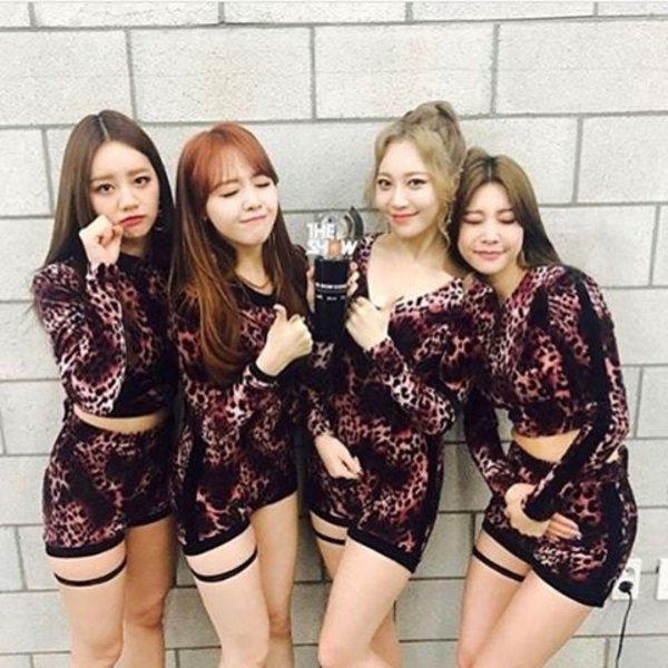 민아는 ‘더쇼’ 1위 트로피를 들고 멤버들과 함께 찍은 사진을 게재했다.