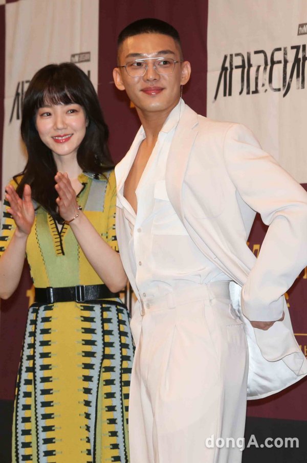 배우 임수정(왼쪽)과 유아인이 5일 오후 서울 강남구 임피리얼팰리스호텔에서 열린 tvN드라마 \'시카고 타자기\' 제작발표회에 참석하고 있다.