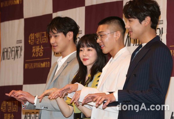 배우 고경표, 임수정, 유아인, 곽시양(왼쪽부터)가 5일 오후 서울 강남구 임피리얼팰리스호텔에서 열린 tvN드라마 \'시카고 타자기\' 제작발표회에 참석하고 있다.