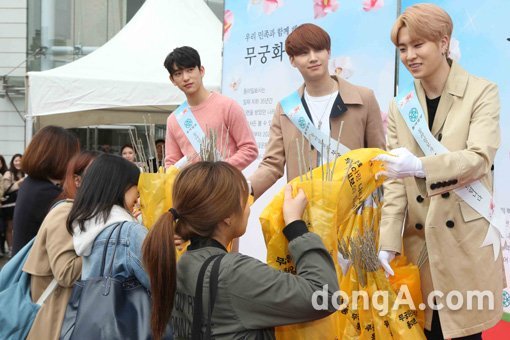 그룹 갓세븐이 5일 오후 서울 종로구 청계광장에서 열린 식목일 기념 무궁화 나눔 행사에 참석해 포토타임을 갖고 있다.이날 행사에는 남성그룹 ‘갓세븐‘ 진영, 영재, 제이비가 참석했다.동아닷컴 국경원 기자 onecut@donga.com