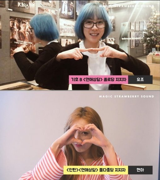 케이윌과 선우정아는 힘들당의 ‘인턴’을 지지하고, 엔(빅스)와 요조는 쏠로당의‘연애상담’을 지지했다. 특히, 뮤지션 요조는 “쏠로당 박세진 후보와 나는 생일이 같다. 그래서인지 뭔가 통하는게 있는 것 같다" 며 천연덕스러운 연기로 쏠로당을 응원했다. 끝내 한 쪽을 정하지 못한 현아와 김신영은 둘다좋당 을 지지하며 옥상달빛의 새 싱글을 전격 응원에 나섰다.