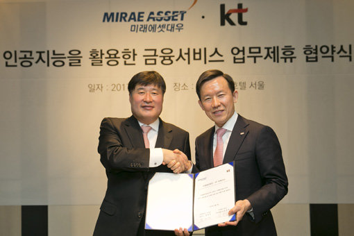 음성으로 금융거래를 할 수 있는 시대가 열린다. KT는 미래에셋대우와 ‘인공지능(AI)을 활용한 금융서비스 제공을 위한 업무협약(MOU)’을 체결했다고 5일 밝혔다. 양사는 이번 제휴를 통해 ‘기가지니’의 음성인식과 AI 기술에 금융정보를 접목해 새로운 서비스를 제공할 계획이다.