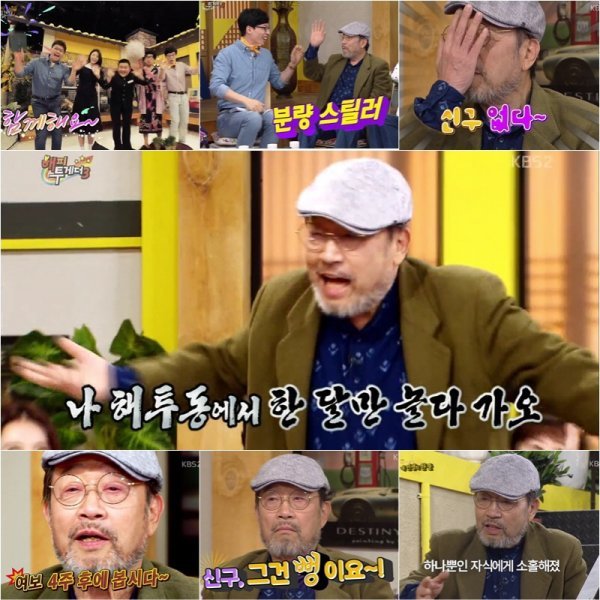 이어 신구는 토크뿐만 아니라 개인기까지 선보이며 좌중을 장악했다. 신구는 "그때는 좀 했지"라며 "낙양 동천 지화자~"를 외치며 단숨에 스튜디오를 탈춤판으로 바꿔놓으며 흥이 넘치는 해투동의 열기를 달궜다. 그런가 하면 신구는 남다른 애교쟁이 모습으로 웃음을 선사했다.