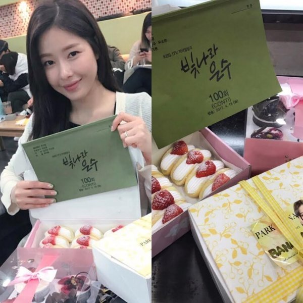 배우 박하나가 드라마 촬영 100회를 맞아 스태프에게 간식을 대접했다.