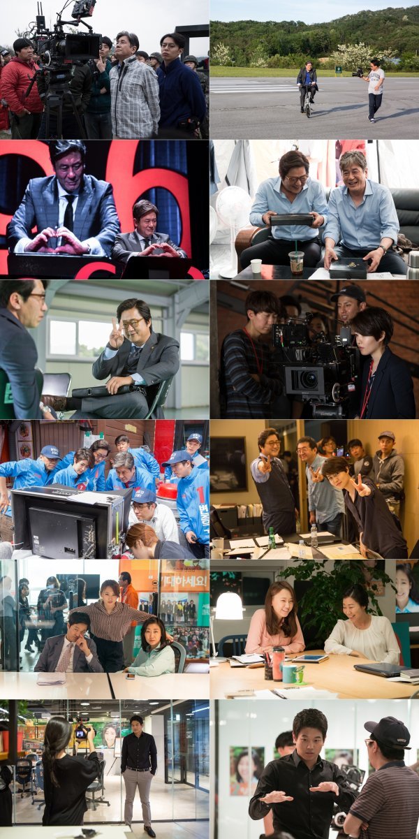 이어 변종구 캠프의 선거대책본부장 ‘심혁수’ 역 곽도원과 청년혁신위원장 ‘박경’ 역 심은경의 모습도 함께 담은 현장 비하인드 스틸에서는 치열하게 연기를 하는 와중에도 시종일관 웃음을 잃지 않는 모습을 볼 수 있어 훈훈한 미소를 전한다. 꼼꼼하고 세밀하게 서로의 연기를 살피는 것은 물론 촬영 대기 시간에도 손가락으로 V를 만들며 잠깐의 여유를 보이는 모습은 세대를 아우르는 연기파 배우 최민식, 곽도원, 심은경은 물론, 변종구 캠프 속 인물들이 만들어갈 특별한 연기 앙상블에 대한 기대감을 증폭시킨다.