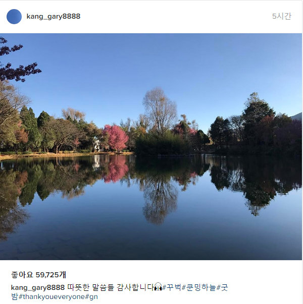 개리는 8일 오전 인스타그램 계정에 “따뜻한 말씀들 감사합니다. 꾸벅”이라는 짧은 글과 사진을 올렸다.