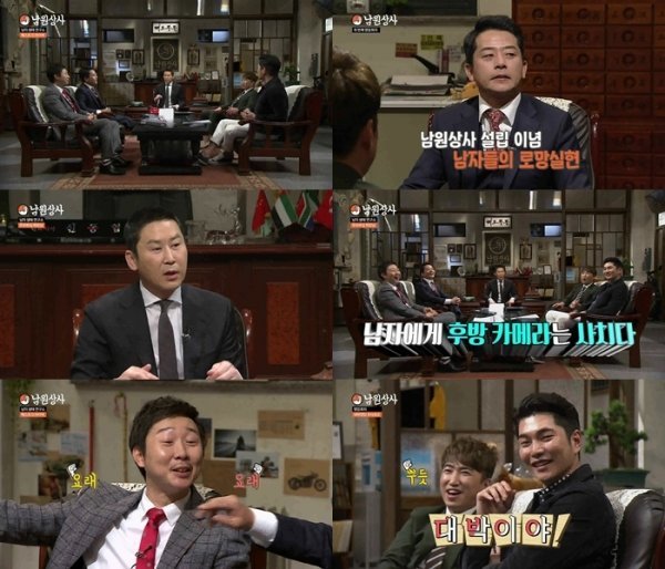 ‘남원상사’는 남자 원기 상승 주식회사라는 이름에 걸맞게 남자들의 로망 실현은 물론 숨겨진 고민을 해결해주기 위해 신동엽, 김준호, 장동민, 김기두, 이민웅이 나설 예정. 더 나아가 ‘남자’에 대해서 보다 알 수 있는 유쾌한 코너들이 여성시청자들의 마음까지 사로잡을 것으로 보인다.