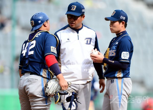 9일 인천 SK행복드림구장에서 ‘2017 타이어뱅크 KBO리그’ SK 와이번스와 NC 다이노스의 경기가 열렸다. 3회말 1사 만루에서 SK 이홍구에게 2타점 적시타를 허용한 NC 선발 이재학이 교체되고 있다.