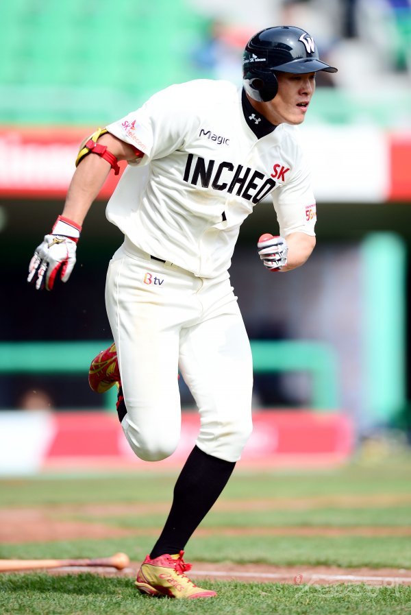 9일 인천 SK행복드림구장에서 ‘2017 타이어뱅크 KBO리그’ SK 와이번스와 NC 다이노스의 경기가 열렸다. 2회말 1사에서 KIA에서 트레이드 된 SK 노수광이 안타를 치고난 뒤 1루로 향해 달리고 있다.