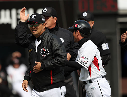 kt 김진욱(57) 감독이 9일 수원 삼성전에서 2017 KBO리그 1호 퇴장의 불명예를 안았다. 평소 온화한 성품과 깔끔한 매너로 정평이 나있는 김 감독. 팀 역시 초반 순항을 이어가던 상황에서 김 감독은 왜 격렬한 항의를 마다하지 않았을까.