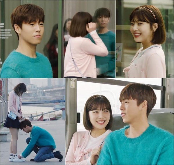 또한 첫 버스데이트를 즐기는 이현우-조이의 모습도 포착돼 순정을 소환한다. 두 사람은 나란히 어깨를 맞대고 앉아 수줍은 미소를 짓고 있다. 조이와 눈을 마주치지 못한 채 미소 짓는 이현우와 오롯이 이현우를 향해 해사한 미소를 짓는 조이의 모습이 청춘들의 데이트를 보는 듯해 설렘을 자아낸다. 이어 무릎을 꿇고 앉아 조이의 운동화 끈을 묶어주는 이현우의 모습까지 공개돼 청량커플 이현우-조이가 보여줄 모습에 기대감이 증폭된다.