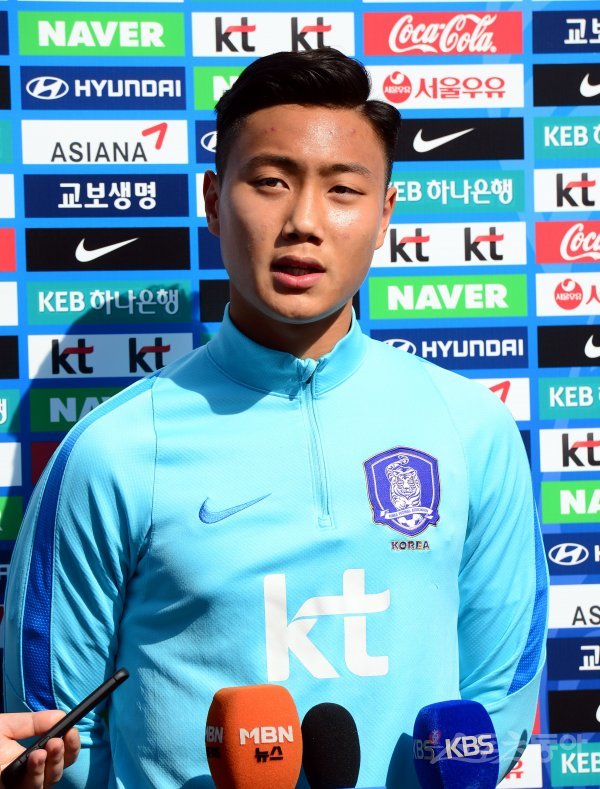 한국에서 열리는 ‘2017 FIFA U-20 월드컵’을 40일 앞두고 10일 경기도 파주 축구국가대표 트레이팅센터(NFC)에 U-20 대표팀 25명이 소집됐다. U-20 축구대표팀 백승호가 인터뷰를 하고 있다.