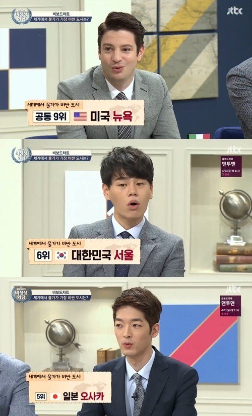 JTBC 예능프로그램 '비정상회담' 10일 방송에서는 ‘세계에서 물가가 가장 비싼 도시’를 주제로 대화를 나눴다.